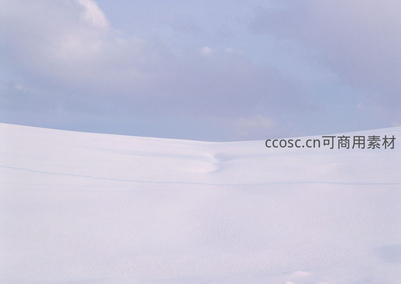 雪丘柔美曲线映衬淡蓝天空,静谧如画
