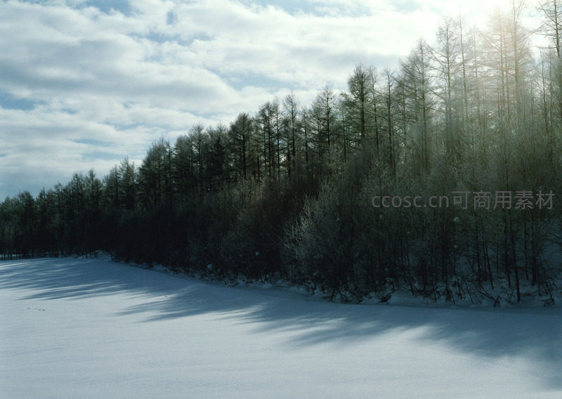 阳光穿透雪林间