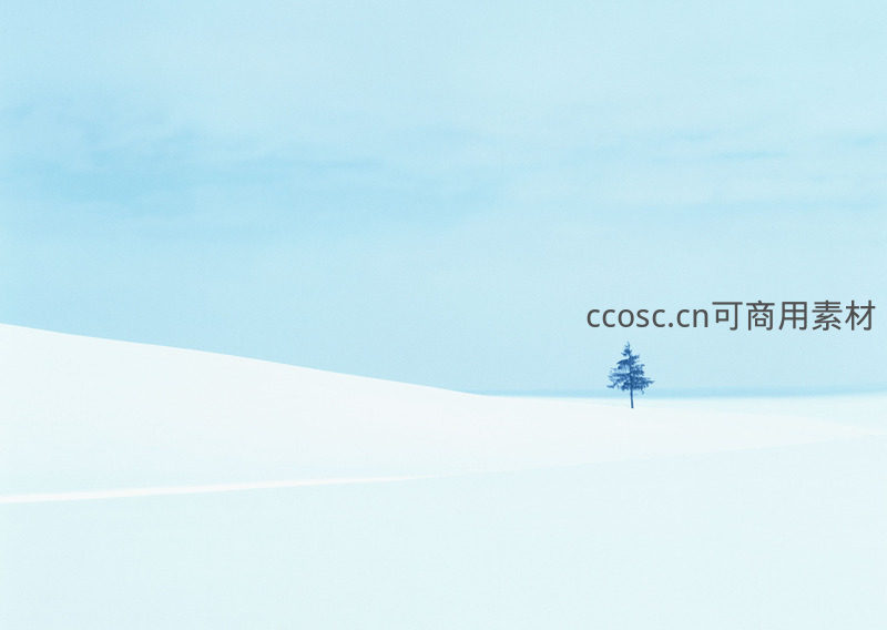 广袤无垠的雪原上,一棵孤树静静伫立,与淡蓝色天空相接,构图极简却意境深远,传递出天地间的孤寂与辽阔。