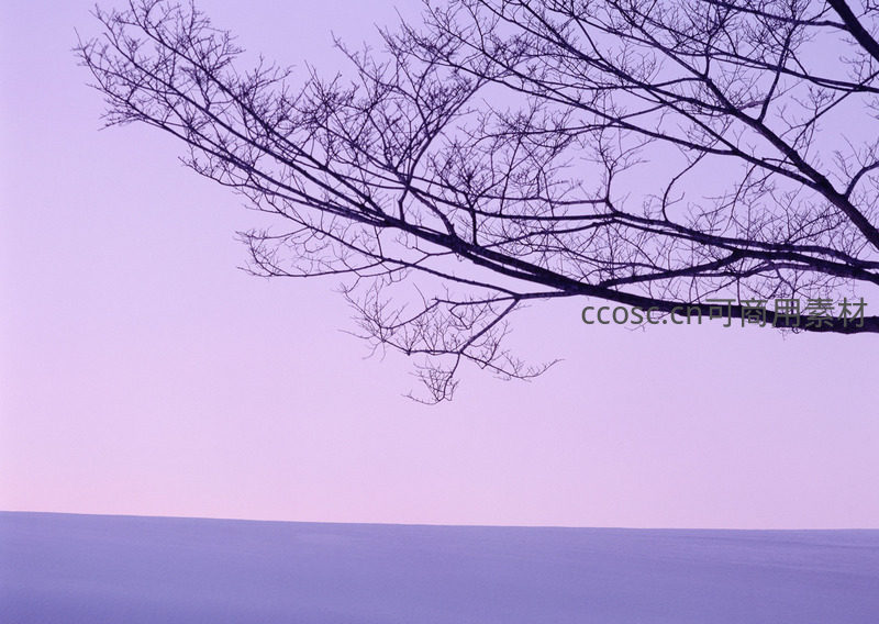枯枝剪影,紫霞漫天如画