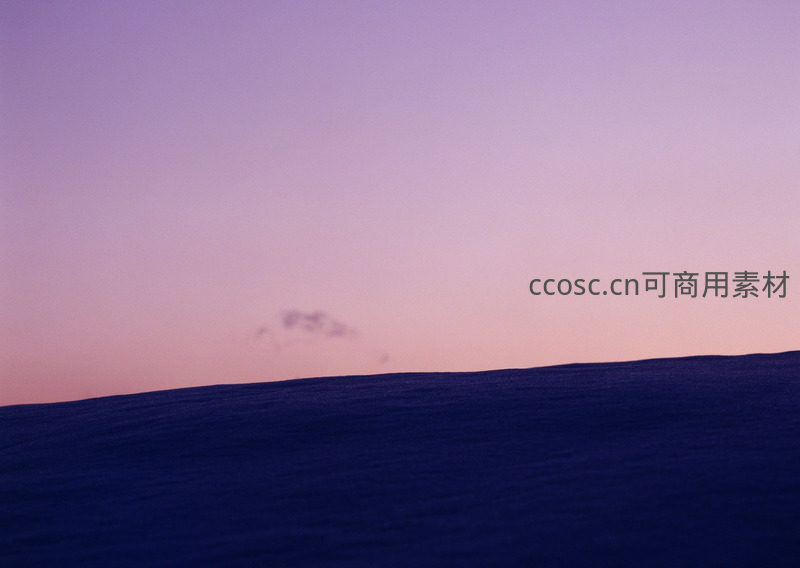 起伏的雪丘在暮色中勾勒出柔和曲线,天空由粉紫渐变为深蓝,一朵孤云悠然飘过,营造出空灵、静谧、梦幻般的视觉氛围。