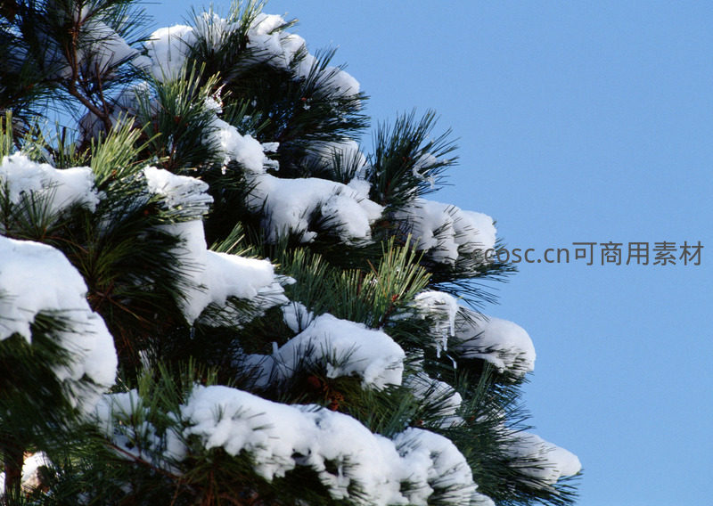 松针承瑞雪,青翠映蓝天