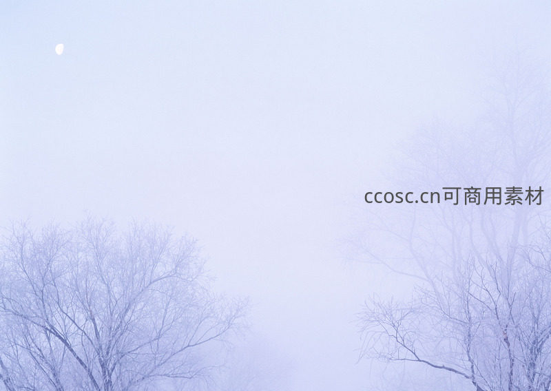雾中月影,枯树静默如画