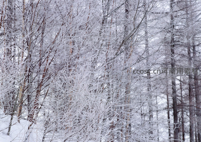 整片森林被厚厚的雾凇覆盖,树木如披银甲,枝条交错成网,在柔和光线下宛如置身于一个静谧而梦幻的冰雪王国。