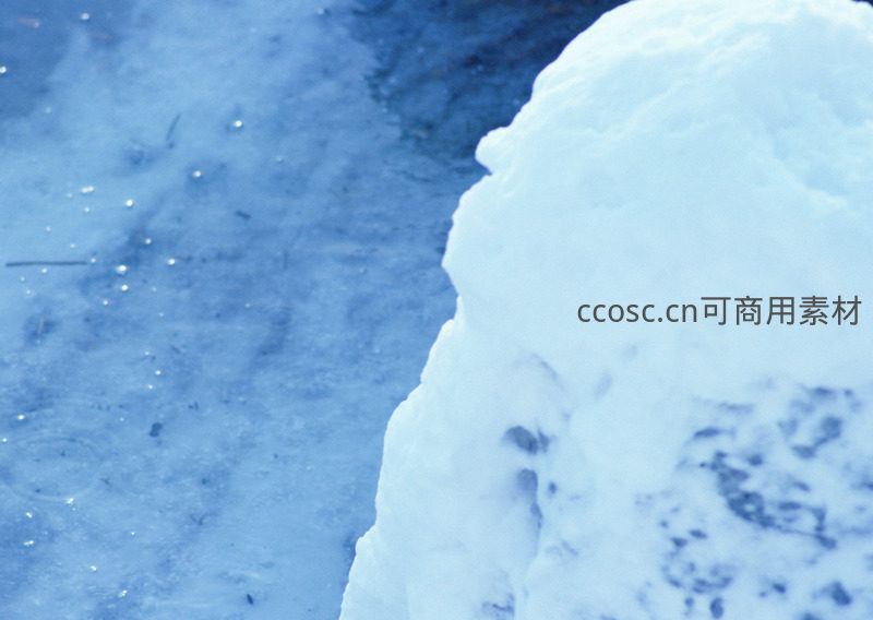雪堆一侧的冰冻边缘在冷色调中清晰可见,表面凹凸不平,细节丰富,展现了严寒天气下自然形成的独特形态。