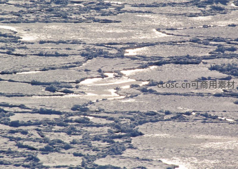 从高空俯视,冰封的河床被裂隙分割成不规则板块,水流在缝隙中蜿蜒,形成如大地脉络般的独特纹理,充满视觉冲击力。