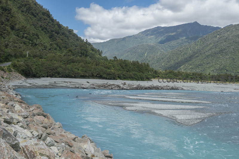 清澈的河流在峡谷中静静流淌,两岸绿树成荫,岩石嶙峋。远处的山峰高耸入云,郁郁葱葱,展现出原始自然的纯净之美,是徒步和摄影的理想之地。