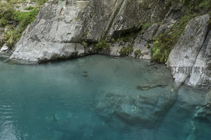 陡峭岩壁围成一湾静谧深潭,碧蓝湖水清澈透明,倒映着岩层纹理与岸边绿植,宛如天然画框,是摄影与冥想的理想之地。