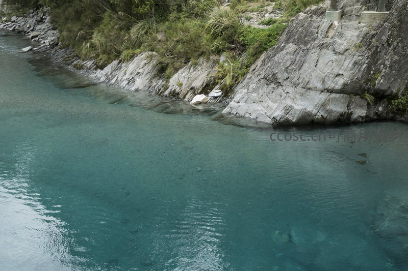 溪谷浅滩水波轻漾,石岸青草相映成趣