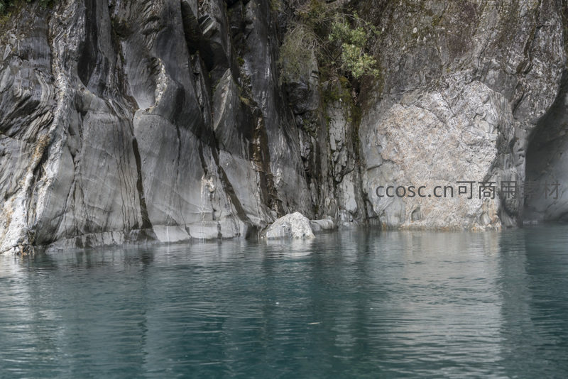 深邃的峡谷中,一汪碧绿的潭水如镜面般平静,倒映着两侧高耸入云的巨大岩壁。岩壁纹理清晰,形态各异,展现出地质变迁的雄伟力量,令人肃然起敬。
