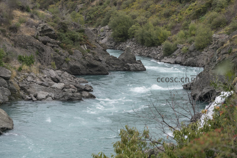 湍急河流穿行于峡谷岩壁之间