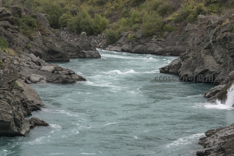 峡谷激流穿石而过,水花飞溅显自然之力