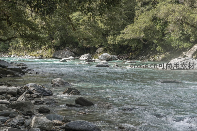 溪谷中水流轻缓拍打岩石,四周浓密绿树倒映水中,光影交错,构成一幅动静相宜、令人心旷神怡的自然生态图景。