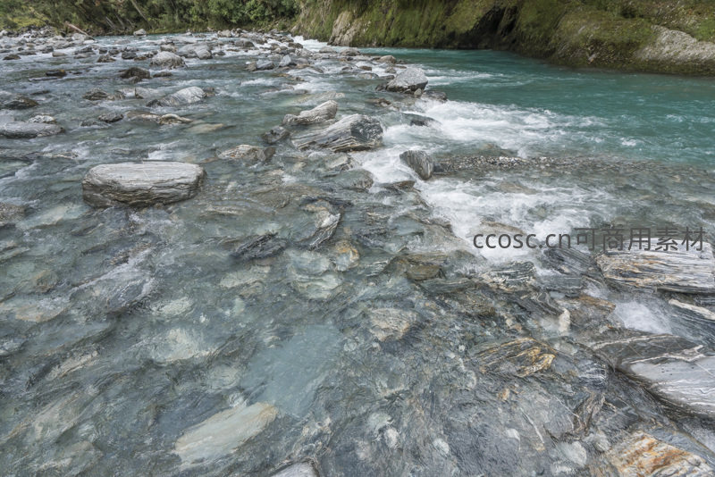 激流碎石间,水纹映天光