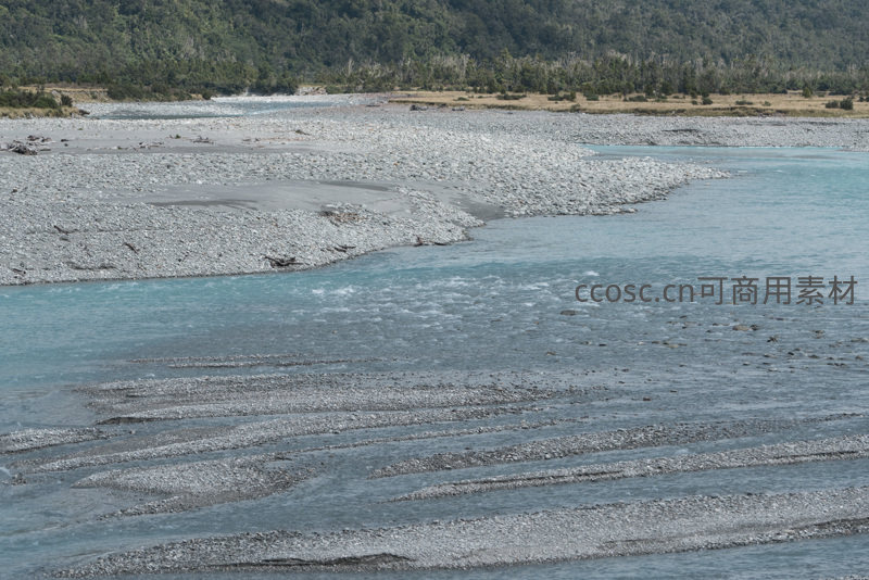 远方青山环抱,河流在宽阔的浅滩上留下层层叠叠的水痕,如同大地的指纹,记录着水流的轨迹与季节的变迁。