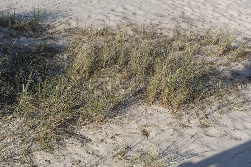 细腻的沙地上,一簇簇坚韧的草丛在阳光下随风轻摆,光影交错间展现沙地生态系统的生命力与静谧。