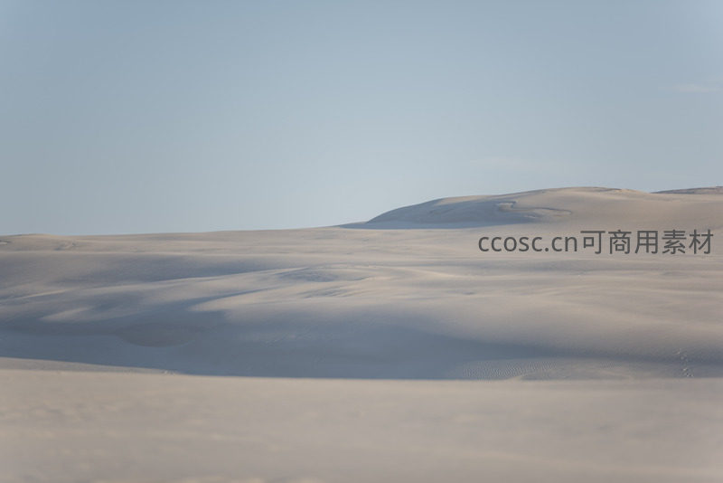 细腻的沙粒在风力作用下形成流畅的波纹,阳光斜照在沙丘上,明暗对比突出其立体感,展现大自然鬼斧神工的雕塑之美。