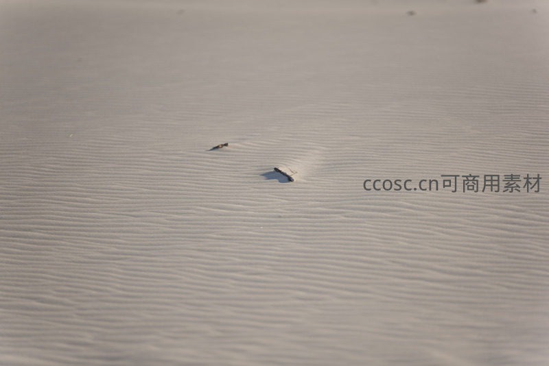 两根细小枯枝散落在起伏的沙面上,与细腻沙纹形成对比,传递出荒凉中蕴含的静谧与诗意。