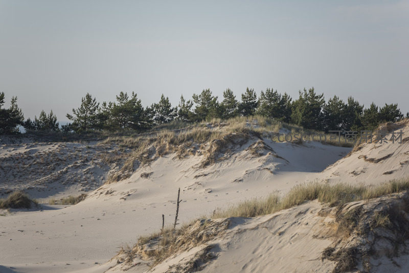 沙丘顶部顽强生长的松树与枯草交织,展现了风沙环境中生命的坚韧与生态系统的微妙平衡,是自然力量与生命共存的生动写照。
