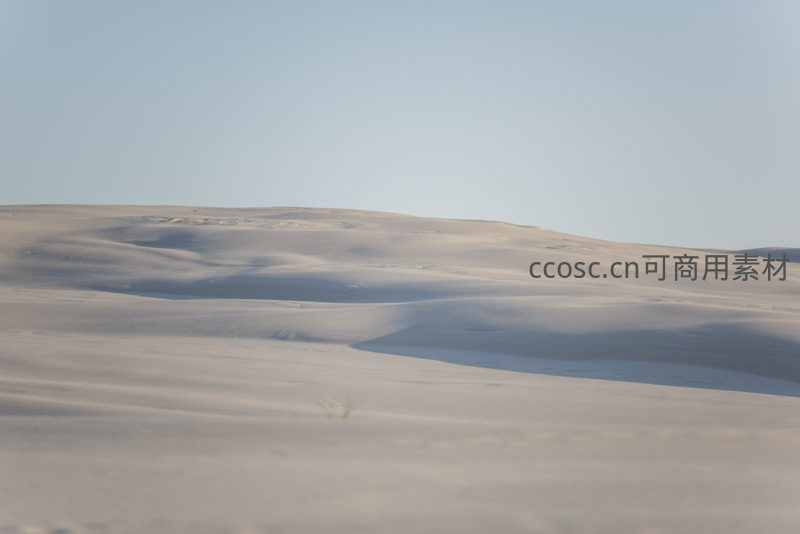连绵起伏的沙丘在无云晴空下舒展着柔和的曲线,光影交错间凸显其立体感,营造出宁静开阔的视觉空间,适合冥想或创作灵感激发。