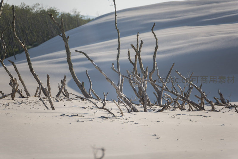 白沙覆野,枯木如骨诉说岁月沧桑