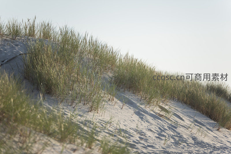 沙丘草丛随风轻摇显生机