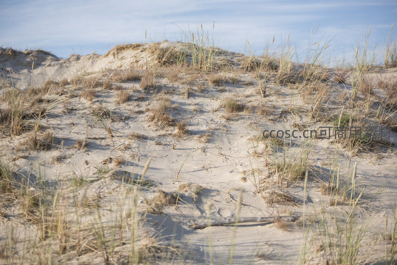 沙丘上的草丛在微风中轻轻摇曳