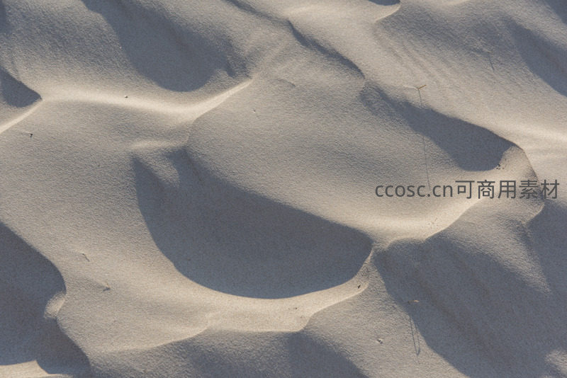 阳光斜照在沙丘表面,投下深浅不一的阴影,凸显出沙粒的细腻质感与地貌的流畅曲线,宛如大地的雕塑。