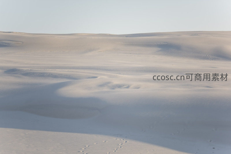 细腻的沙面被风吹出波浪状纹理,几行微小的动物足迹悄然穿行其间,记录着生命在广袤沙海中留下的短暂痕迹。