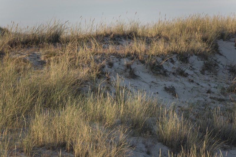 夕阳余晖下,金黄的草丛在沙丘坡面上随风舞动,光影斑驳,勾勒出柔美而富有生命力的自然边界。