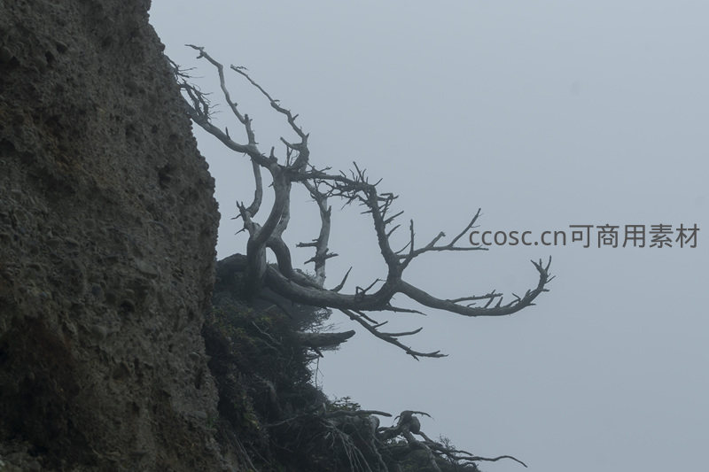 悬崖枯枝探云海,风霜刻骨展沧桑