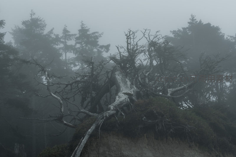 雾中枯树,苍凉孤寂的自然景象