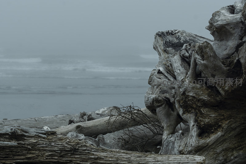 礁石之畔,风化巨木凝望无垠海面