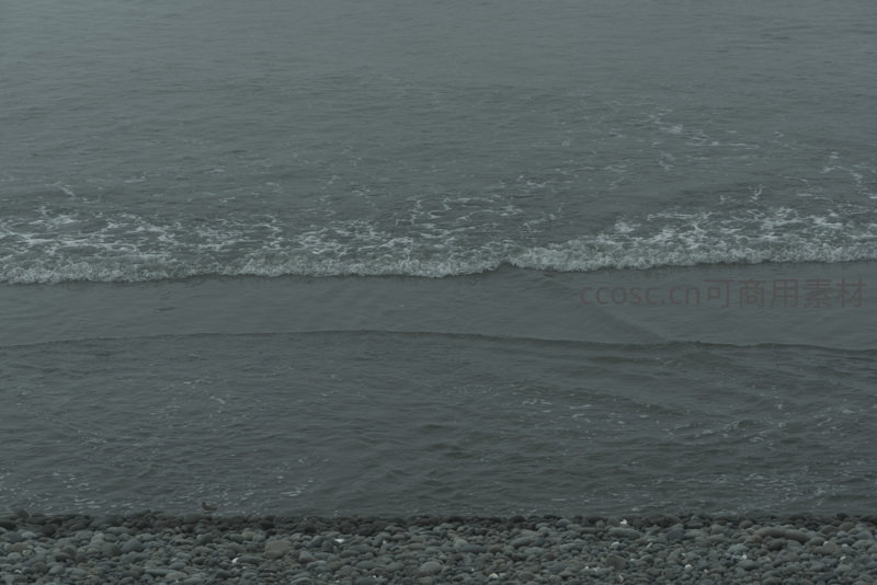 灰暗海浪轻拍卵石滩的静谧瞬间