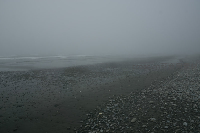 迷雾中的海岸线,石子与潮水共舞