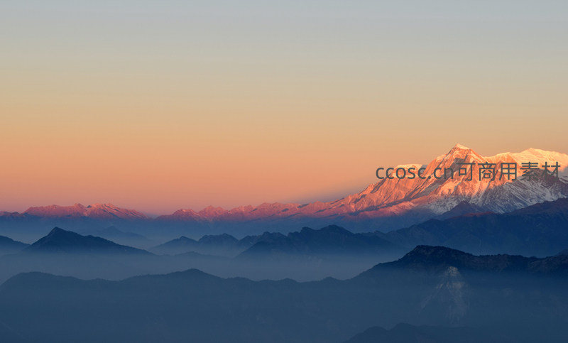 朝阳初升,金色光芒洒满雪顶,层层叠叠的山峦在薄雾中若隐若现,天空被染成梦幻的粉橙色,展现出高原雪山最震撼人心的晨景。