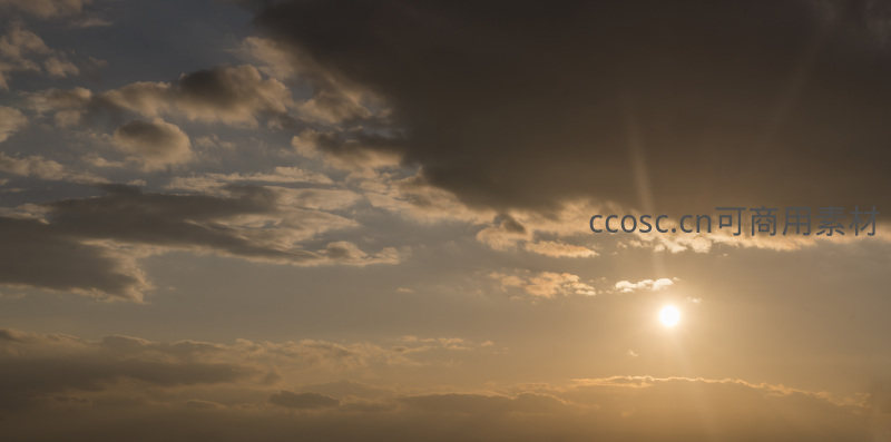 厚重的云层间突然裂开一道缝隙,金色阳光如利剑般直射而下,形成强烈的明暗对比,展现大自然的壮丽与力量。