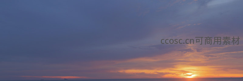 太阳缓缓沉入海平面,将天边云朵染成金色与橙红,海天一线处光影交融,呈现出一幅辽阔、温暖且充满诗意的海滨日落画卷。