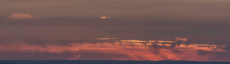 绚烂的霞光穿透厚重云层,将天空染成一片火红,远处山峦与海面轮廓朦胧,构成一幅大气磅礴、充满诗意的自然景象。