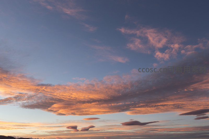 绚烂的晚霞将天空渲染成橙红与深蓝交织的画卷,层层叠叠的云朵如燃烧的火焰,远方地平线静默无言,构成一幅令人心醉的自然风光。
