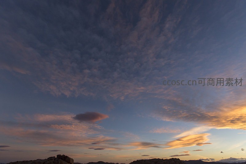 黄昏时分,天空被温柔的粉紫与金黄晕染,云层如波涛般涌动,山峦轮廓在光影中若隐若现,营造出宁静而富有诗意的视觉享受。