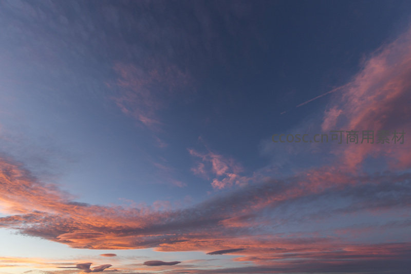 壮丽的晚霞将天空渲染成橙红与深蓝交织的画卷,层叠的云朵在夕阳余晖中变幻色彩,营造出宁静而震撼的视觉盛宴。