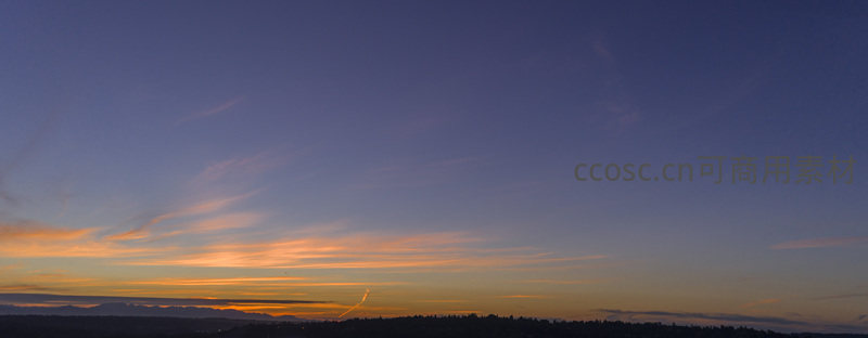 广阔的天空被绚烂的晚霞铺满,从暖橙到深紫渐变,下方是连绵山脉的黑色剪影,构成一幅宁静而宏大的黄昏全景图。