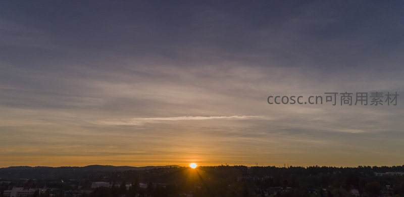 清晨时分,太阳从地平线上缓缓升起,柔和的光线穿透薄云,为城市与山林披上金色外衣,带来希望与宁静的一天开端。