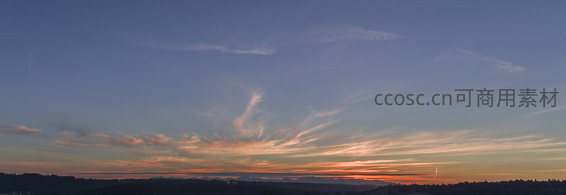 远山轮廓在霞光中若隐若现,云丝如烟缭绕天际,橙红与靛蓝交汇,展现大地与苍穹共谱的黄昏交响诗篇。