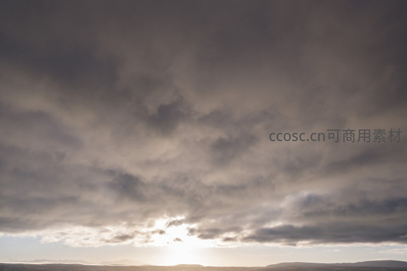 厚重乌云裂开缝隙,耀眼阳光倾泻而下,照亮远方地平线,象征着黑暗之后的光明与新生,气势恢宏。