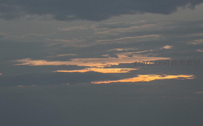 厚重云层中裂开一道缝隙,橙红色的夕阳光芒倾泻而出,为灰暗的天空注入活力与温度,带来一天结束前的温柔慰藉。