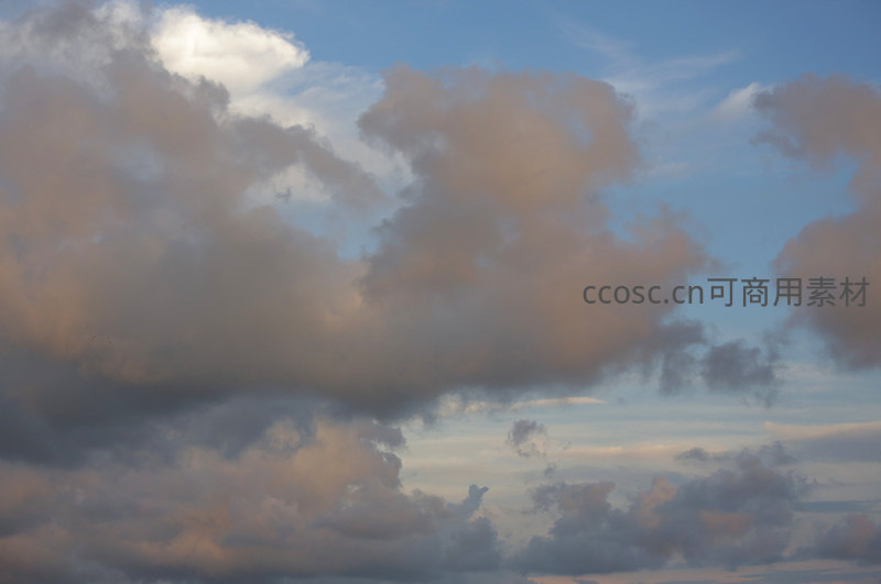 大片蓬松洁白的云朵在湛蓝天空中缓缓漂浮,底部略带阴影,顶部泛着暖金色光芒,整体画面开阔明亮,给人以自由舒畅之感。