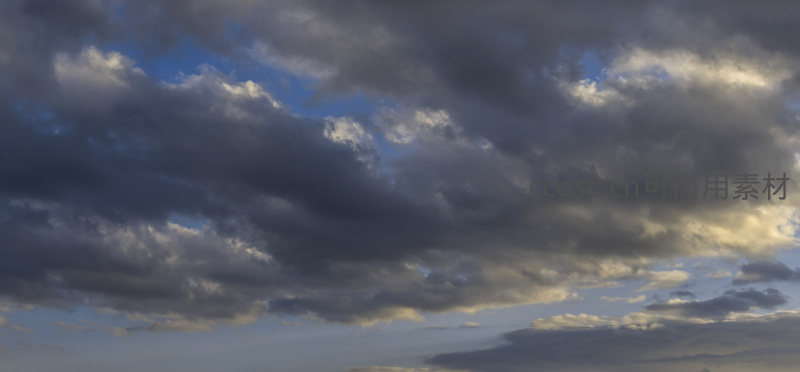 深灰色的厚重云层在天空中翻滚,边缘被夕阳染成金黄,与湛蓝的天幕形成强烈对比,营造出一种壮阔而神秘的氛围。