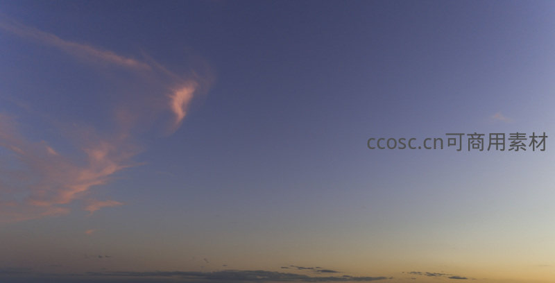 黄昏时分,天空被染成深蓝与淡紫的渐变,几缕粉色云彩如丝带般飘逸,营造出宁静而梦幻的氛围。